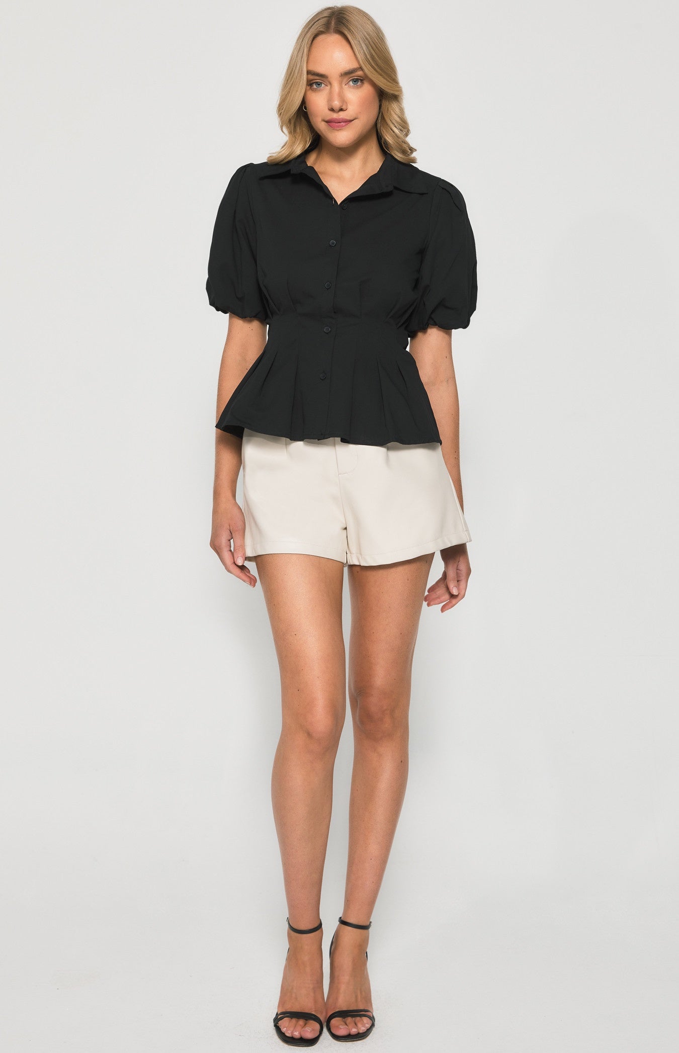 Front button up with pleated waist design
